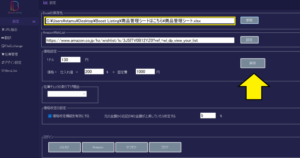 3.先ほど空欄だったExcelの保存先にファイル名が表示されましたので、保存ボタンを押しましょう。