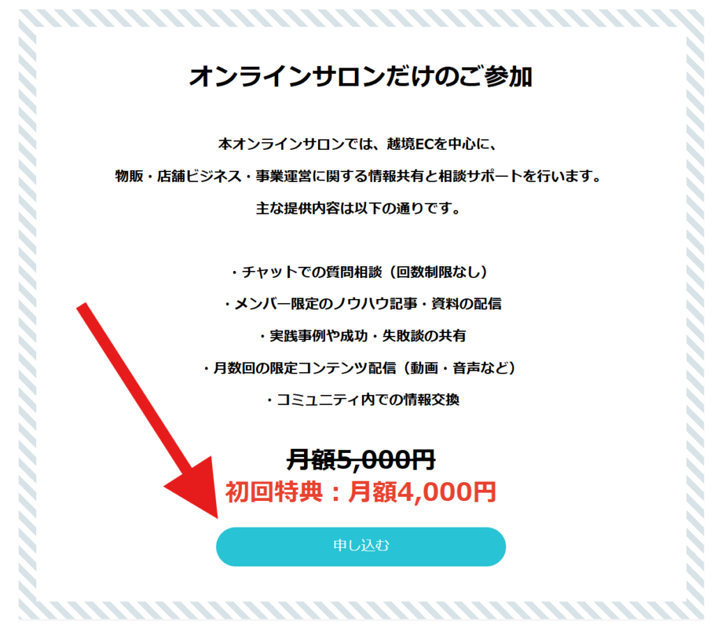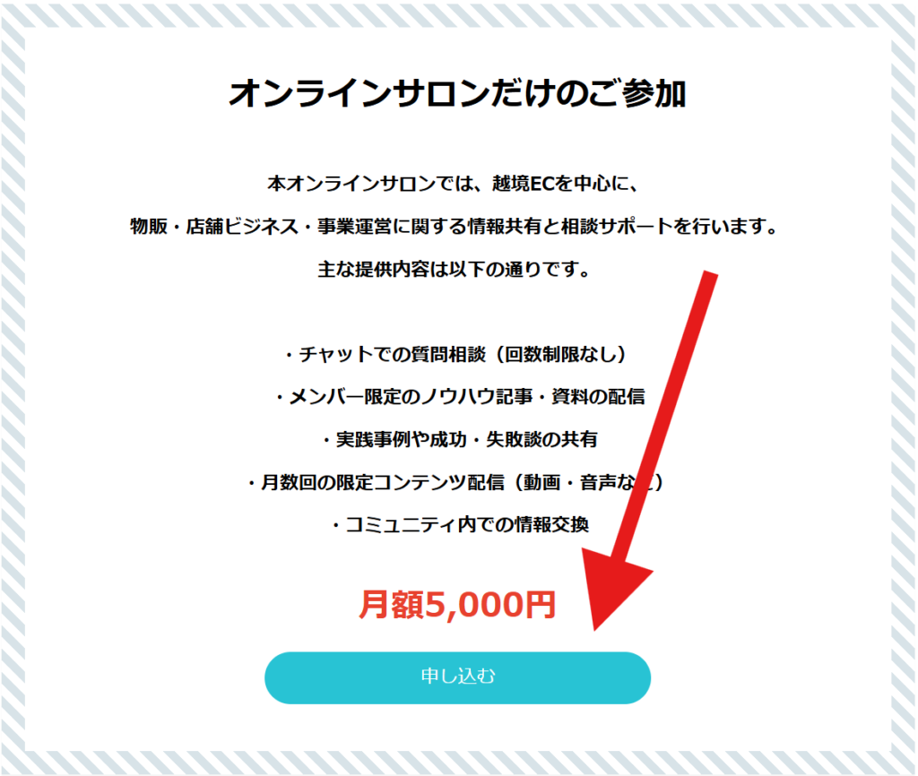ページ内の一番上にある『オンラインサロンだけのご参加』という箇所からご決済へお進みください