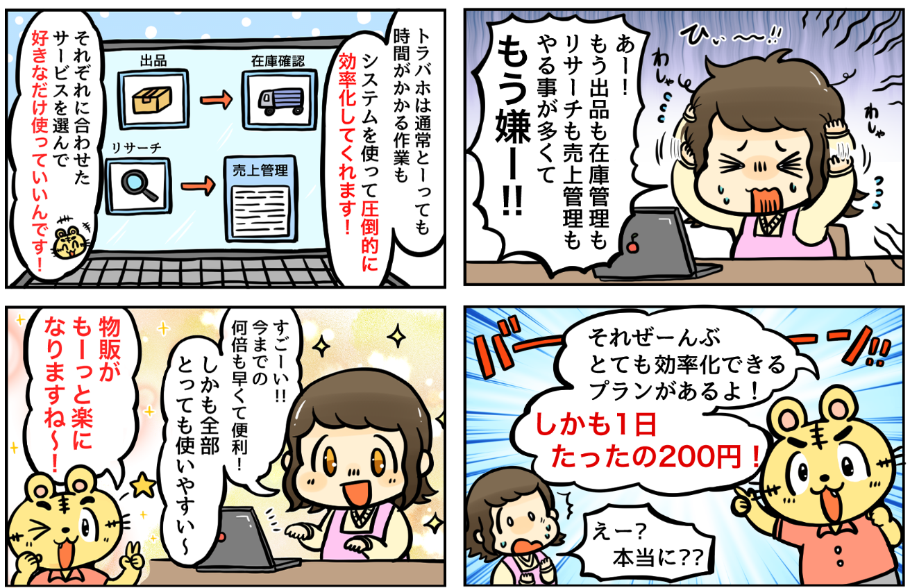 以前は全て手作業で成果も出にくく在庫切れも頻発していましたが、導入後は出品・在庫管理・リサーチで大幅に時間削減、売上も3倍近くに。低コストで導入して正解でした。