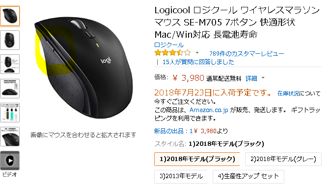 こちらのマウスは黄色の箇所のようにマウスについてるボタンをワンクリックするだけで、